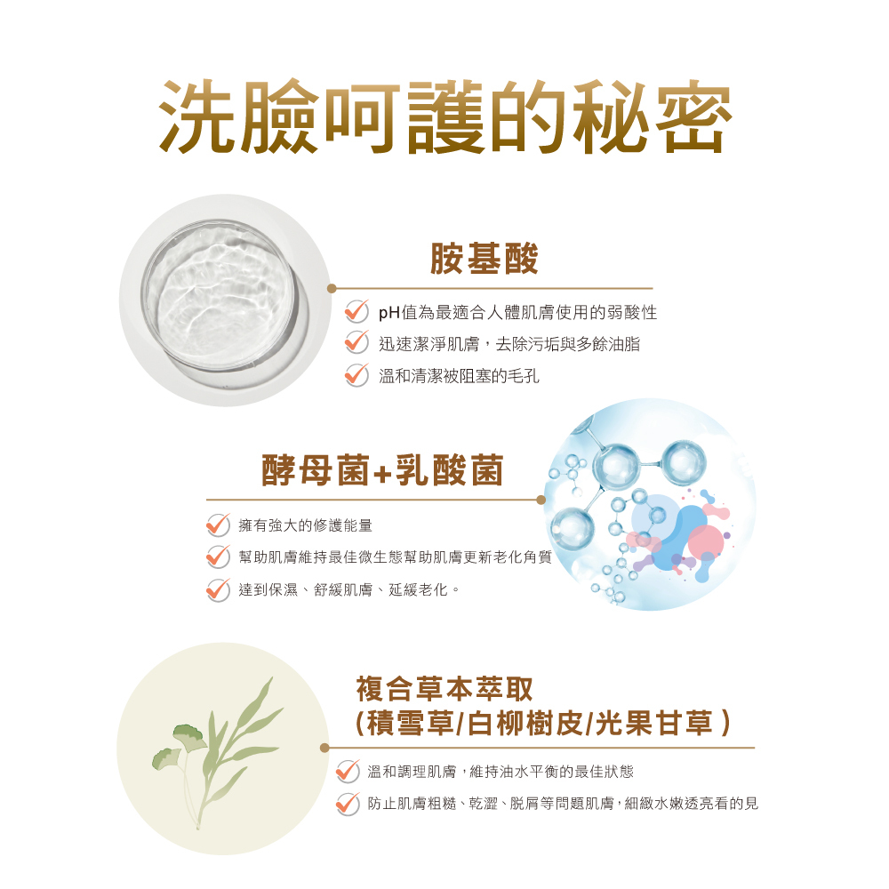 酵母菌+乳酸菌 有效調理肌膚油脂分泌,維持油水平衡的最佳狀態,改善粉刺及痘痘發生率,洗後肌膚滑順清爽,不緊繃、不乾澀、不熏眼,呵護每一吋肌膚,煥發全新光采。