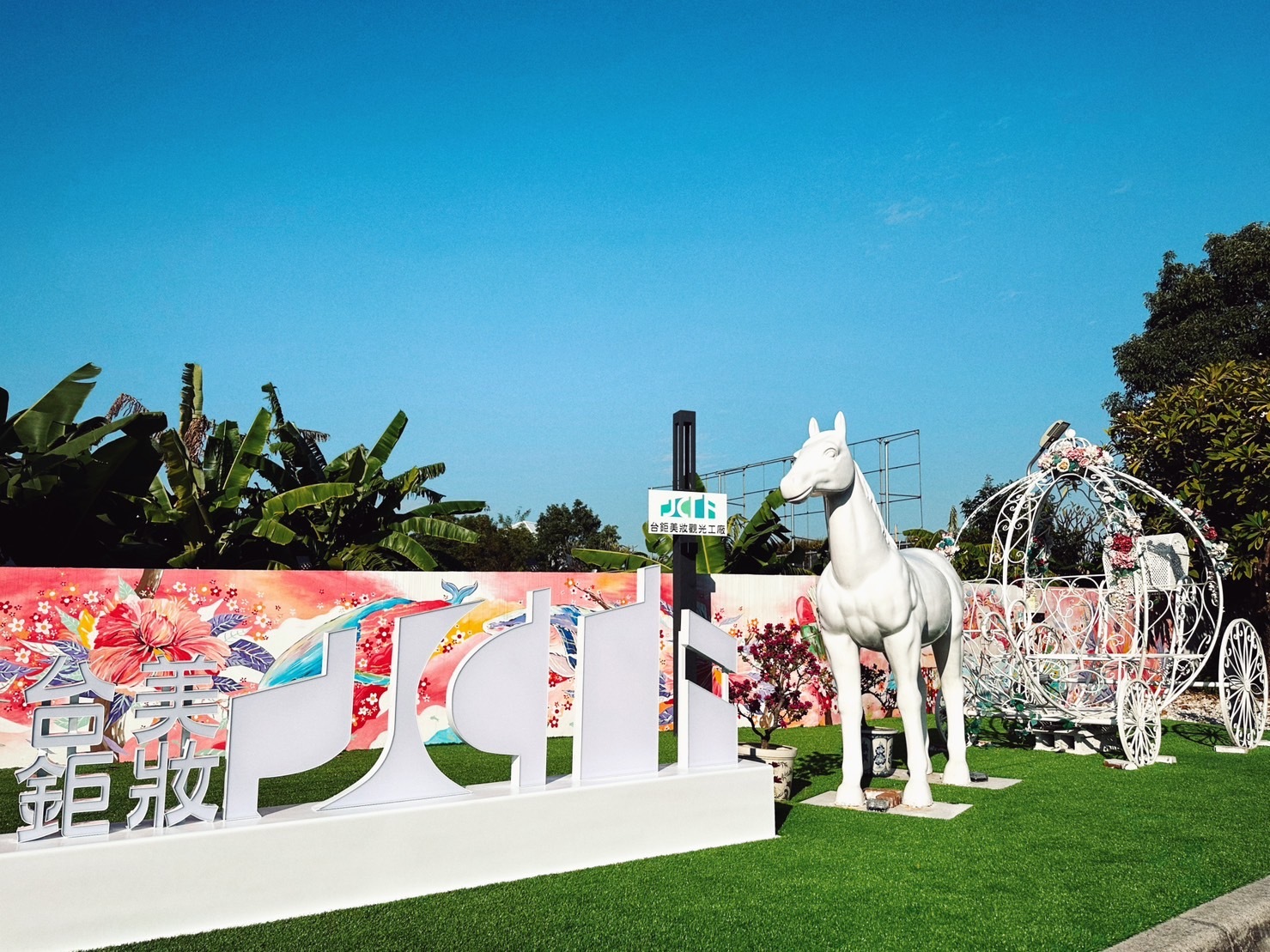 佔地廣闊的台鉅美妝觀光工廠,戶外設置多處網美打卡景點,館內則帶領民眾一窺台鉅生技歷年來的發展,並展示為不同國家設計的彩妝盒,造型多變又搶眼。
