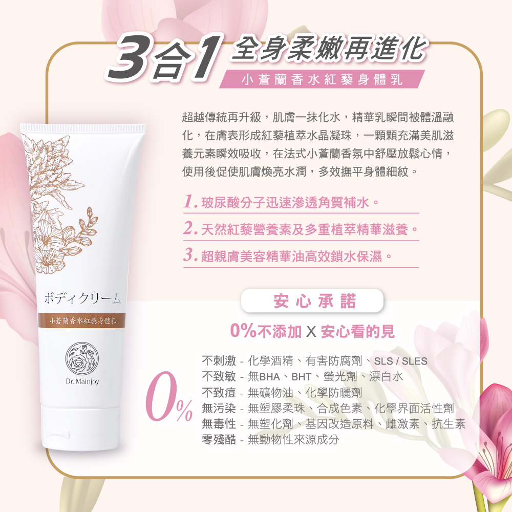 用法:取適量塗抹於全身,特別是針對手肘膝蓋及身體較乾燥等處加強。