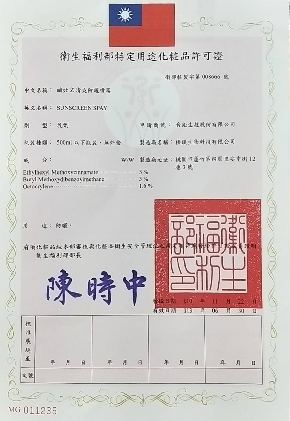 衛部粧製字第008666號