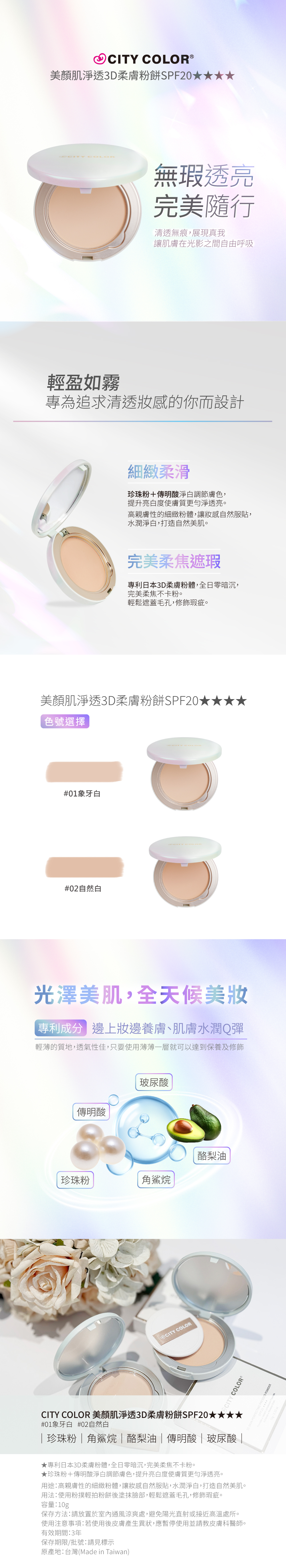 ★CITY COLOR美顏肌淨透3D柔膚粉餅SPF20★★★★