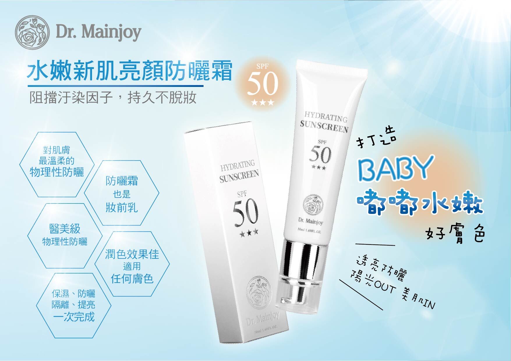 打造BABY嘟嘟水嫩好膚色,透亮防曬,陽光OUT!美肌IN!