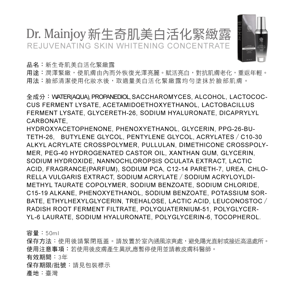 用途:撫平皺紋、延緩肌膚老化、有效鎖水保濕,深層淨黑,改善肌膚黯沉。