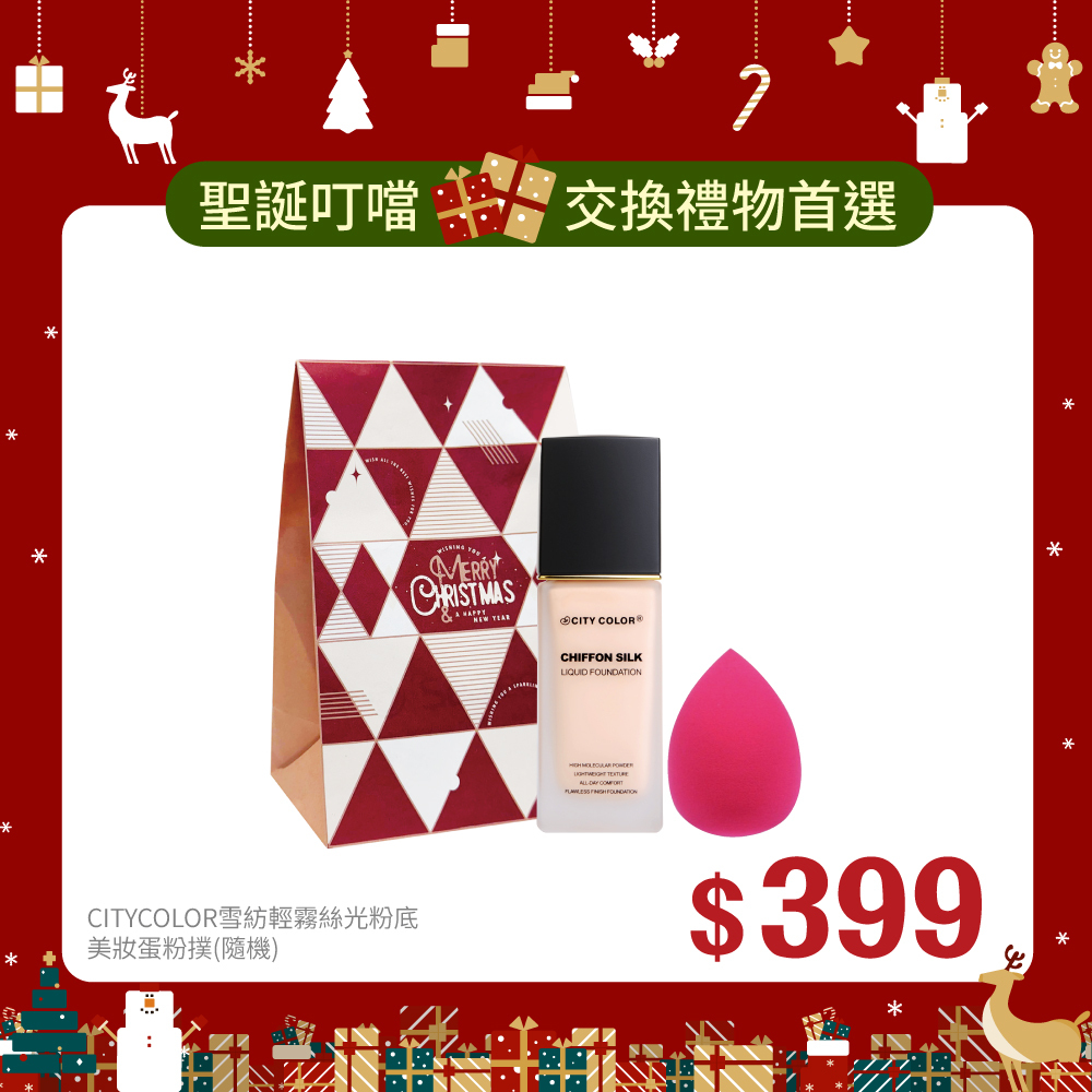 【聖誕交換禮物】雪紡輕霧絲光粉底+美妝蛋粉撲(水滴型/斜口型_隨機出貨)(禮袋包裝隨機)