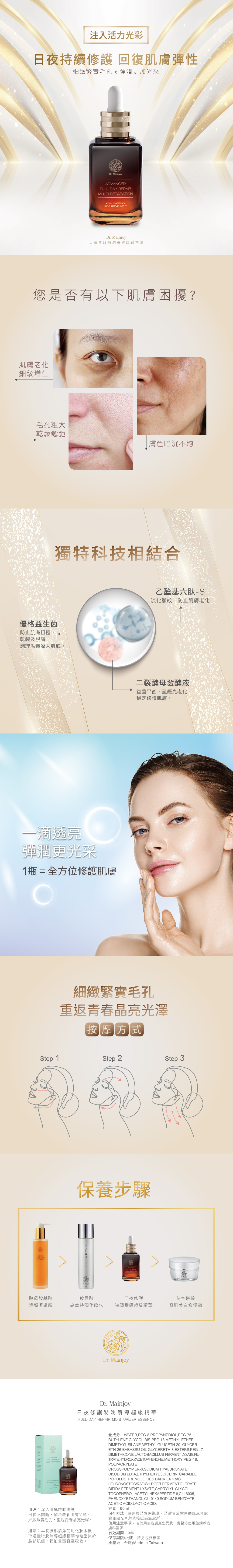 用途:深入肌底啟動修護,日夜不間斷,解決老化肌膚問題。