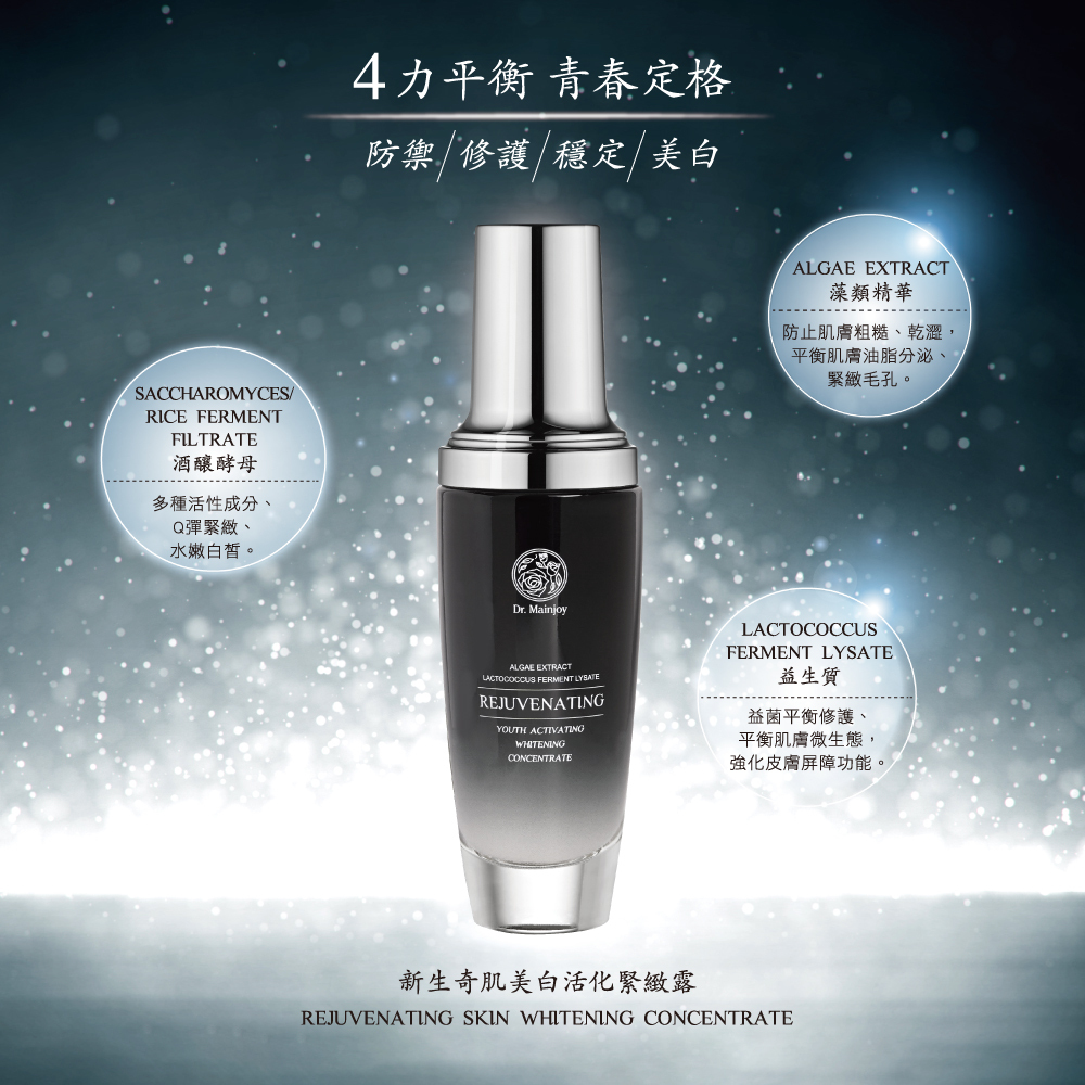 二裂酵母發酵液-益菌平衡修護、預防光老化,穩定修護肌膚狀況。