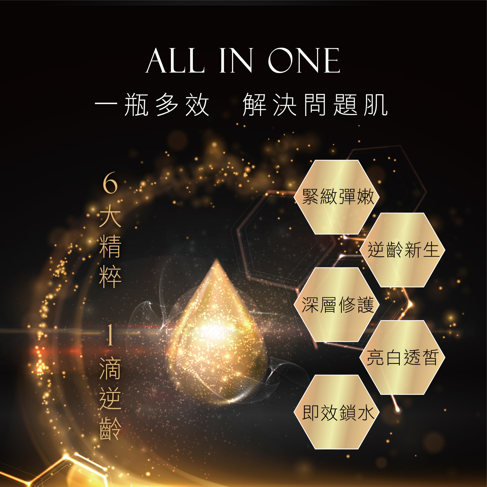 用途:濃縮精華劑型,頂級抗老配方,改善肌膚暗沉、撫平皺紋、淡化細紋黑斑、改善肌膚老化。使肌膚回復彈性光澤亮麗,逆轉肌齡,重返青春。