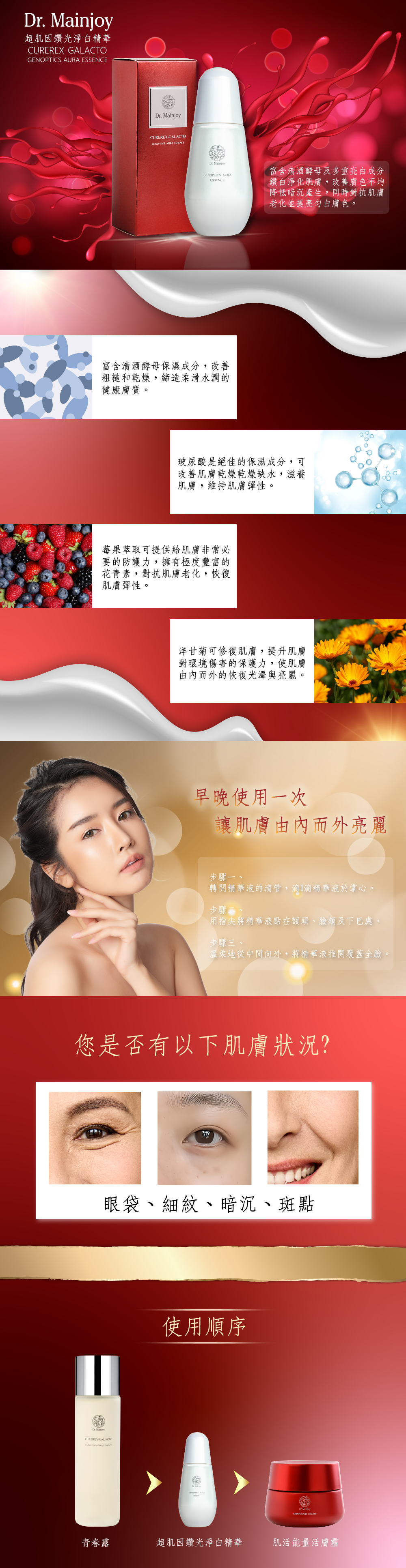 使用注意事項:此產品僅供外用,若使用後皮膚產生異狀,應暫停使用並請教皮膚科醫生。