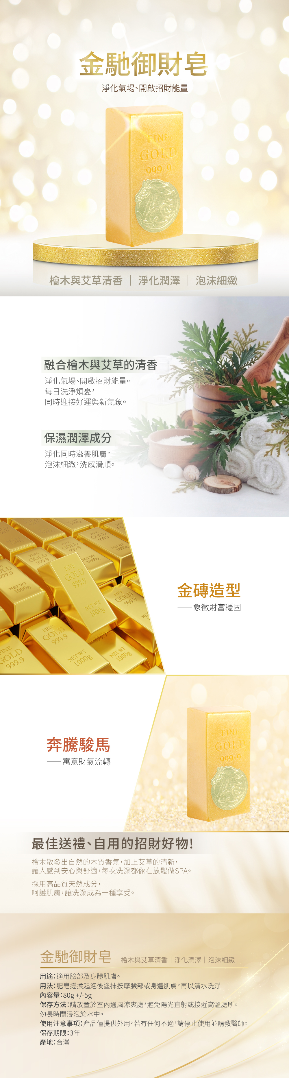 檜木與艾草—融合檜木與艾草的清香,淨化氣場、開啟招財能量。每日洗淨煩憂,同時迎接好運與新氣象。